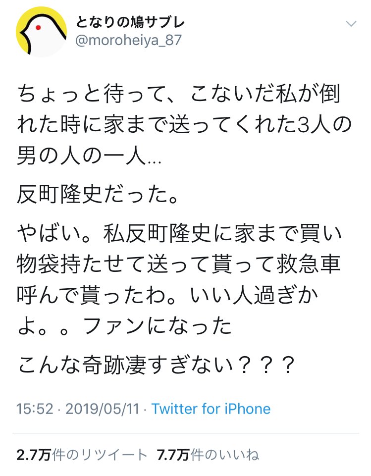 2019年と少し前にはなりますが、反町隆史さんに助けてもらったという方のツイートです。