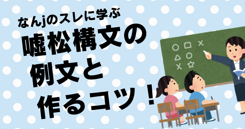 度々なんjなどで見かける「嘘松構文」。 あなたも作ってみたいなと思ったことはありませんか? 今回はなんjの嘘松構文スレで実際にカキコミされている例文から、嘘松構... -
